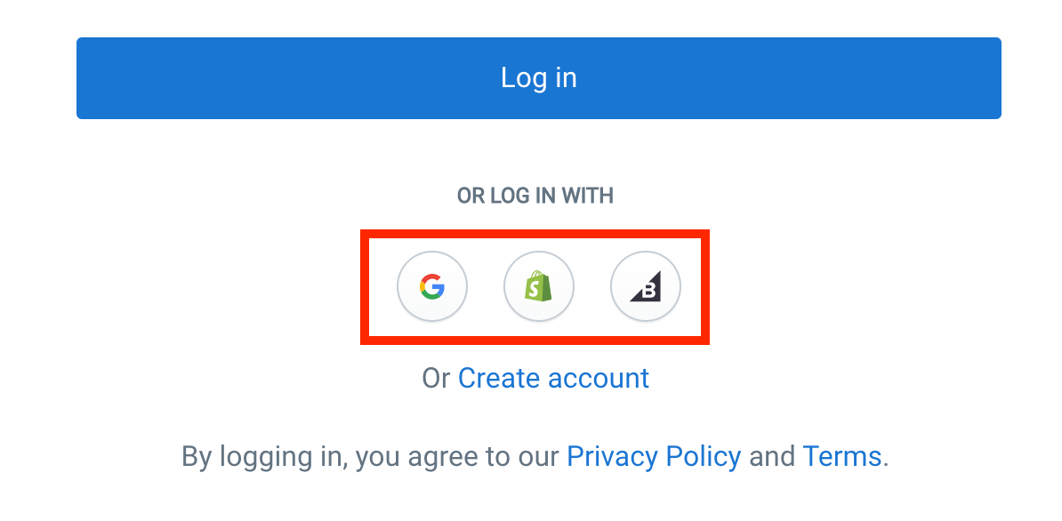 在Automizely登录页面,您可以选择通过Automizely账号登录,也可以直接选择底部的第三方登录入口,直接登录。