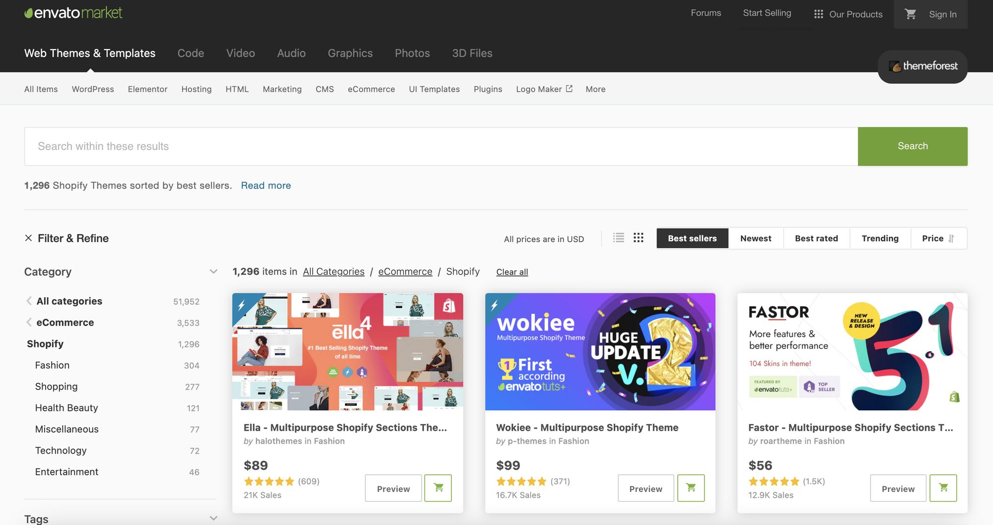 So what happened to ThemeForest? I believe those 3rd party theme stores will be obsolete soon. New Shopify stores easily get themes when they open Shopify store within the Shopify admin dashboard. With more and more themes adding to the Shopify Theme Marketplace, I think users will no longer feel the need to visit a 3rd party theme store.