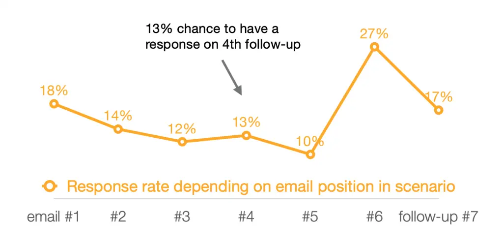 Instead, you can spend a few minutes tweaking messages according to individuals’ fits. After 2-3 follow-ups, it’s natural for you to panic a little and worry—but data says it can mostly take up to 5-6 follow-up messages/emails for a lead to convert. So you’re still hoping!